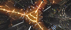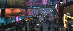 Der Verkehr auf Coruscant war immens, und daher reglementiert. In endlosen Ebenen übereinander durchzogen Skylanes die Stadt, auf denen die Fahrzeuge und Vehikel automatisch in Kolonnen navigiert wurden. Diese führten teilweise hoch über den höchsten Wolkenkratzern entlang, doch gerade auch in den Straßenschluchten waren Skylanes übereinander geschichtet, damit es überhaupt erst möglich wurde, sich in der unüberschaubaren Gebäudeflut zu bewegen. Ein freier Verkehr in allen Richtungen jedenfalls wäre undenkbar gewesen, und so riss der Strom auf den festgelegten Skylanes nie ab. Überhaupt kam Coruscant nie zur Ruhe. Auch auf der Nachtseite fand man zu jeder Zeit pulsierendes Leben, rastlosen Verkehr und zahlreiche Passanten im Lichtermeer der Schluchten. |