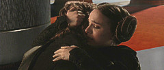 beiden Seiten. Das Böse ist allgegenwärtig. Im Orbit von Coruscant jagen Anakin und Obi-Wan die Invisible Hand, Grievous' Schiff, auf dem der Kanzler gefangen gehalten wird. In einem furiosen Manöver kämpfen sie sich bis in das Schiff, wo sie den gefesselten Kanzler tatsächlich vorfinden. Doch Count Dooku stellt sich ihnen in den Weg. Nach der letzten Begegnung einig, vereint auf ihn loszugehen, muß Anakin sich schon bald allein behaupten, da Dooku Obi-Wan außer Gefecht setzt. Doch Anakin ist stark geworden, er besiegt den Count. Vor den Augen Palpatines liegt Dooku hilflos vor Anakin, und der Kanzler rät Anakin, ihn hier und jetzt zu töten. Anakin zögert zunächst, doch auf Drängen des Kanzlers enthauptet er Dooku. Nun beginnt die Flucht aus dem Schiff, und Obi-Wan ist nicht bei Bewußtsein. Doch diesmal gibt Anakin dem Rat Palpatines nicht nach, ohne ihn zu flüchten. 'Obi-Wans Schicksal wird auch unseres sein', entgegnet Anakin, und nimmt den bewußtlosen Jedi mit. Obi-Wan ist kommt kurz darauf wieder zu sich, aber Grievous stellt die Gruppe der drei. Obi-Wan und Anakin sind mit ihm im Kampf konfrontiert, und sie zwingen ihn letztlich zur Flucht, das Schiff jedoch gerät durch diese Manöver in ernstliche Schwierigkeiten und ist zur Notlandung auf Couscant gezwungen. In einer gefährlichen Bruchlandung kann Anakin sich, Obi-Wan und den Kanzler heil zu Boden bringen. Eine weitere Heldentat Anakins, der in den Klonkriegen bereits viele Schlachten geschlagen hat. Der Kanzler ernennt daher Anakin als seinen persönlichen Vertreter im Rat der Jedi. Auch wenn dies nicht die Aufgabe des Kanzlers ist, sondern der Jedi selbst, die in dieser Angelegenheit anders denken. Ein Schlag ins Gesicht für Anakin. Doch Padme hat eine freudige Botschaft für ihn: Sie ist schwanger. Zwar wird dies ihre noch immer heimliche Ehe in Schwierigkeiten vor der Öffentlichkeit bringen, aber Anakin ist glücklich. Über seine Ablehnung durch den Rat der Jedi, und deren Mißtrauen gegen sein großes Vorbild, den Kanzler, kann Anakin sich allerdings nicht freuen. Und dann wird er zunehmend von Alpträumen geplagt: Er sieht, wie seine geliebte Padme stirbt, bei der Geburt des Kindes. Anakin gerät von mehr und mehr Seiten unter Druck. General Grievous ist mittlerweile ausgemacht: Er versteckt sich auf Utapau. Obi-Wan wird entsendet. Der Kanzler hätte Anakin bevorzugt, aber der Rat der Jedi ist skeptisch. Dieser bittet Anakin nun sogar, alles über Palpatine zu berichten. Anakin soll das Vertrauen des Kanzlers für die Jedi benutzen. Immer mehr Zweifel kommen Anakin am Rat der Jedi, und Palpatine schürt diese. Er weiß von Anakins Ängsten um Padme, und er behauptet, er könne Anakin helfen, Padme durch die dunkle Seite der Macht vor dem sicheren Tod bewahren. Anakin erkennt daraufhin, mit wem er es zu tun hat: Palpatine ist der Sith-Lord Sidious, der hinter allem steckt. Und Anakin meldet seine schockierende Entdeckung dem Rat der Jedi. Mace Windu verbietet Anakin jedoch, Palpatine zu stellen, er selbst macht sich mit den Jedi Kit Fisto, Saesee Tiin und Agen Kolar auf den Weg zu diesem. Die Ängste, die Palpatine in Anakin geschürt hat, lassen diesen jedoch eingreifen, und er läßt nicht zu, dass Windu, der als einziger der vier Jedi noch lebt, Palpatine tötet. Er klammert sich daran, dass nur Palpatines Wissen Padme vor dem Tode bewahren kann. Nicht noch einmal will Anakin die wichtigste Frau in seinem Leben sterben sehen. So schreitet Anakin ein, wodurch Palpatine Windu töten kann. In diesem Moment der des Schocks und der Schwäche ergibt sich Anakin Sidious und der der dunklen Seite, und erkennt Palpatine als seinen neuen Meister an. Er wird dessen Sith-Schüler Darth Vader. Palpatine befiehlt, alle verbleibenden Jedi zu töten, da diese sich mit der Rebellion gegen ihn zu Feinden der Republik gemacht hätten. Anakin stürmt daraufhin auf Palpatines Befehl den Tempel der Jedi und tötet alle Verbliebenen, die nicht auf entfernten Planeten in den Klonkriegen eingesetzt sind, auch die jüngsten. Obi-Wan hat Grievous auf Utapau mittlerweile aufgefunden, ihn gestellt, und sogar besiegt. Yoda ist auf Kashyyyk, um dem Volk der Wookiees, dem er seit langem zugetan ist, im Krieg zu helfen, und auch sonst sind die meisten Jedi auf fernen Planeten im Krieg, als Palpatine an alle Klontruppen die Order 66 ausgibt: Sämtliche Jedi sollen getötet werden. Ki-Adi-Mundi fällt auf Mygeeto, Plo Koon auf Cato Neimoidia. Aayla Secura und Barriss Offee werden auf Felucia ermordet, Stass Allie auf Saleucami, Luminara Unduli auf Kashyyyk und Shaak Ti mit vielen anderen und auch den jüngsten Jedi im Jedi-Tempel Einzig Obi-Wan auf Utapau und Yoda auf Kashyyyk entkommen knapp. Sie kehren nach Coruscant zurück, werden aber rechtzeitig von Senator Bail Organa gewarnt: Er hat den Angriff auf den Jedi-Tempel mit eigenen Augen gesehen, und weiß, dass die offiziellen Äußerungen des Kanzlers nicht der Wahrheit entsprechen. Obi-Wan und Yoda überzeugen ich selbst vor Ort, und erkennen Anakins schrecklichen Wandlung. Palpatine ernennt sich derweil im Senat zum Herrscher des ersten galaktischen Imperiums, unter dem Jubel des Senats. Palpatines nächster Auftrag an Anakin ist es, auf Mustafar die verbliebenen Separatistenführer um Nute Gunray auszuschalten. Während Anakin auf Mustafar unter diesen wütet, setzt Obi-Wan Padme von der furchtbaren Wahrheit über Anakin in Kenntnis. Entsetzt macht sie sich auf den Weg nach Mustafar, da sie als einzige von Anakins Aufenthaltsort weiß. Und Obi-Wan folgt ihr heimlich. Zur gleichen Zeit konfrontiert Yoda den Imperator. Er hat ihn durchschaut, und beide liefern sich einen furchtbaren Kampf im Senat. Yoda entkommt knapp, doch der Imperator bleibt an der Macht. Auf Mustafar erkennt Padme Anakins furchtbare Wandlung, er ist voller Wut, Angst und Haß, und als er dann noch Obi-Wann erkennt, glaubt er in seiner Rage, selbst Padme hätte ihn verraten. Er würgt sie mit einem fürchterliche