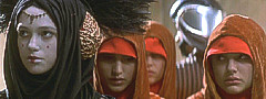 Diese verwendete eine Fülle an Stoffen und Materialien, vielfältigen Kombinationen und reichen Verzierungen. Am deutlichsten zeigte sich dies bei der königlichen Mode, den Gewändern der regierenden Königin von Naboo. Diese waren von überbordender Pracht und unterstrichen den Charakter des Amtes. Aber auch Kleidung für einfachere Anlässe und gesellschaftliche Positionen zeigte immer große Liebe für Details und Schönheit. Padmé Amidala trug ihren zahlreichen gesellschaftlichen Rollen und Ämtern entsprechend unterschiedlichste Kleider und Gewänder, die immer auf den Anlass abgestimmt waren. Es folgen einige ihrer schönsten und eindrücklichsten Auftritte. |
