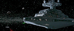 Sternzerstörer hatten eine beeindruckende Kampfstärke vorzuweisen. Sie waren schnelle, stark gepanzerte Schiffe mit robusten Schilden, die große Mengen an Truppen und auch Jägerstaffeln mit sich führen konnten und darüber hinaus selbst über schlagkräftige Geschütze verfügten. Ein direkter Angriff eines interstellaren Schiffes von der Größe des Rasenden Falken oder auch einer Corellianischen Corvette wäre undenkbar gewesen, und so konnten Besatzungen solcher Schiffe als Gegenwehr höchstens Wendigkeit und Listigkeit einbringen, anders wäre einem Angriff durch einen Sternzerstörer keinesfalls zu widerstehen gewesen. Han Solo gelang es in einem meisterlichen Manöver, imperialen Sternzerstörern auch ohne funktionstüchtigen Hyperantrieb zu entkommen, indem er einen Frontalangriff vortäuschte, und den Rasenden Falken dann aber direkt an der Rückseite des Brückenturms andockend verbarg. Dieser dreiste Trick kostete denn auch Captain Needa, Befehlshaber der Avenger, durch Vaders Hand das Leben. |