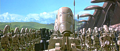 Ihr gehörten unter anderem auch die Geonosianer an, die über große Kapazitäten zur Produktion von Kriegsdroiden verfügten. Ob die Geonosianer bereits die Truppen für die Belagerung Naboos gebaut hatten, erscheint wahrscheinlich, wenn auch nicht ganz sicher. Unter Führung Count Dookus schlossen sich im Laufe der Zeit immer mehr Systeme den Separatisten an, einige tausend Systeme waren bereits aus der Republik ausgetreten. Dem sah die Republik unter Kanzler Palpatine nicht tatenlos zu. Auf Geonosis entzündeten sich die Klonkriege zwischen Separatisten und Republikanhängern. Während der Klonkriege war die Handelsföderation nach wie vor eine der wichtigsten Stützen der Separatistenbewegung, sie unterstützte auf Dookus Anweisung auch General Grievous, und steuerte zahllose Kriegsdroiden bei. Letztendlich wurden die Führer der Separatisten im Allgemeinen und der Handelsföderation im Speziellen und vor allem Vizekönig Gunray von Darth Vader auf Mustafar getötet, wodurch die Klonkriege beendet wurden. Von der Handelsföderation war seit diesem Zeitpunkt nichts mehr zu hören. |